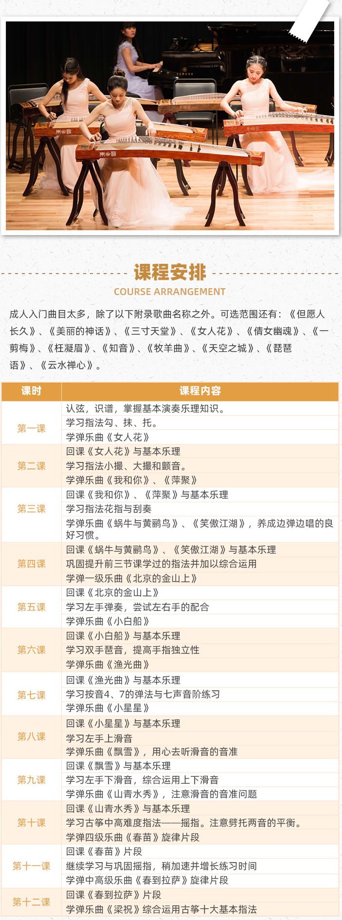 适合人群:喜欢古筝的或被工作烦心的成人朋友。有无基础都可以报名,音乐学院老师一对一教学。